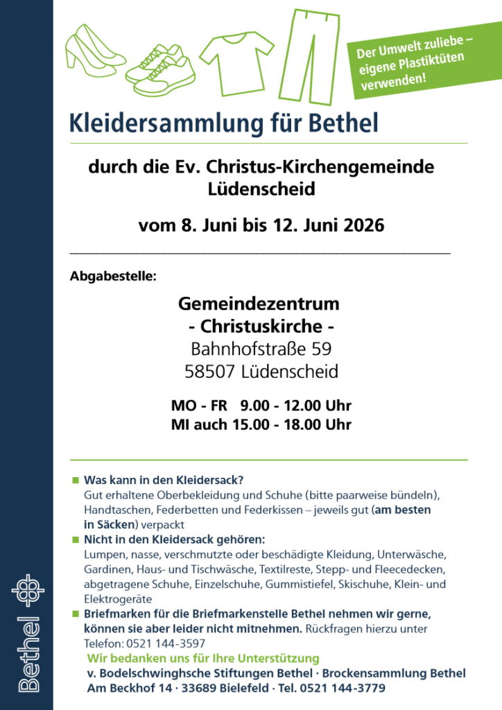 Alle, die 1975, 1965, 1960, 1955oder 1950 in der Evangelischen Christus-Kirchengemeinde Lüdenscheid konfirmiert wurden, sind herzlich zur Feier der Jubelkonfirmation am 28.9.25 eingeladen